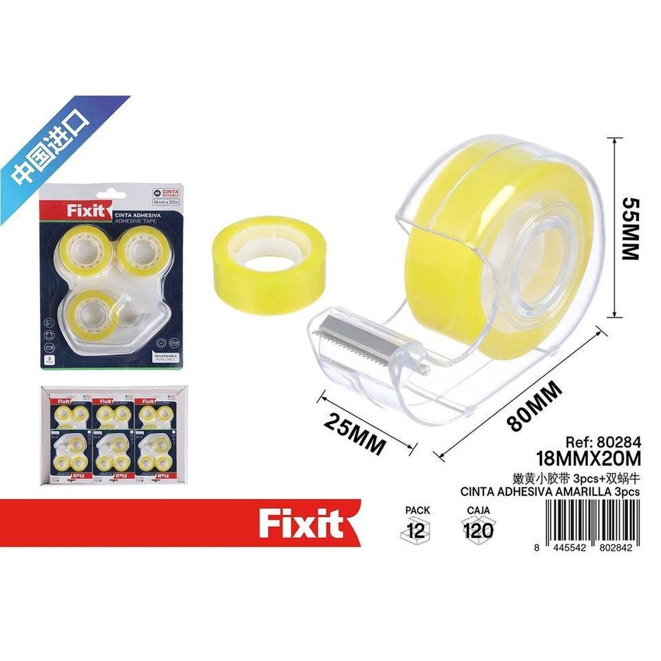 Yellow adhesive tape 18mmx20m - Pack of 3