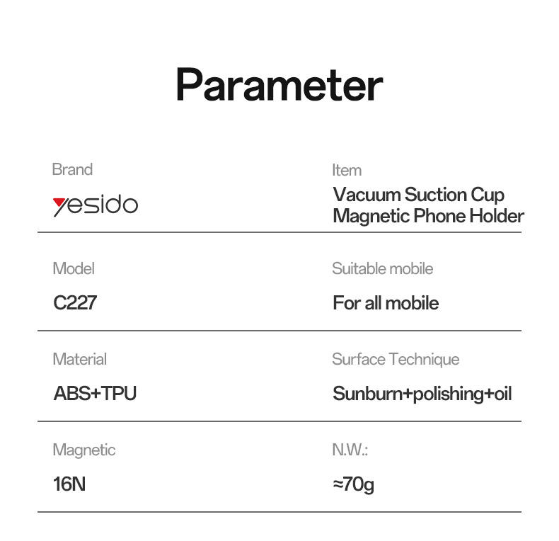 Yesido C227 360 Rotation Magnetic Vacuum Suction Cup Car Phone Holder Innovative Design for Mobile Phone