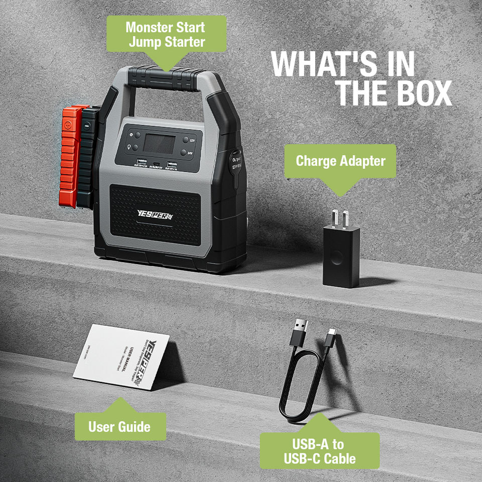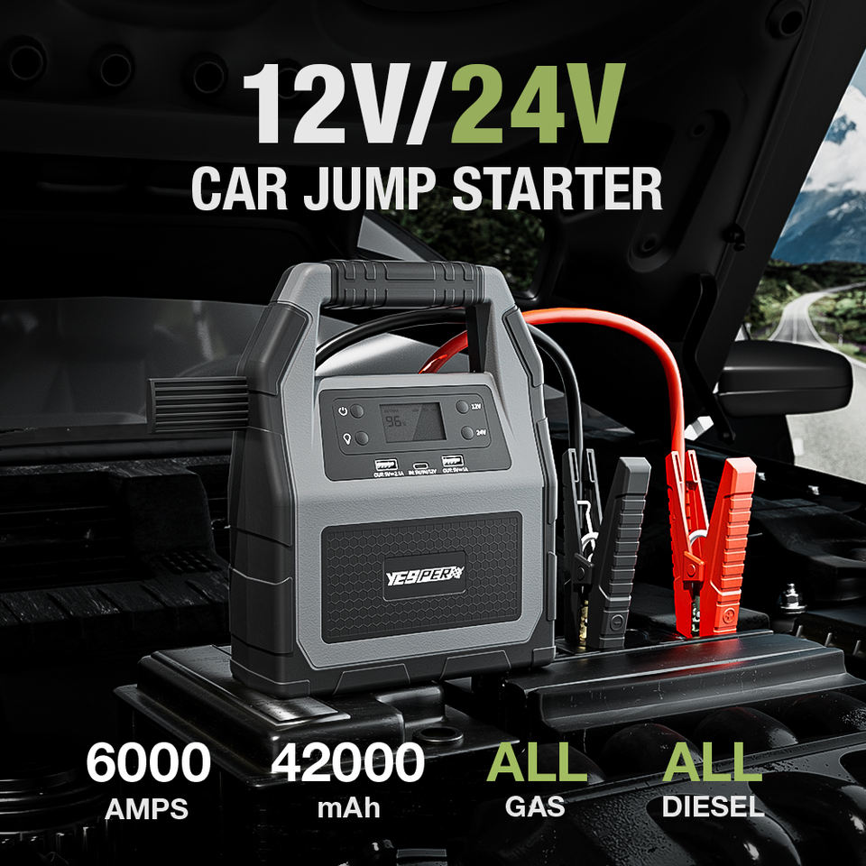 Yesper Monster Start Best Sale 12V 24V Car Booster Jump Starter High Power 6000A 42000mAh with Cigarette Lighter Arrancador De c
