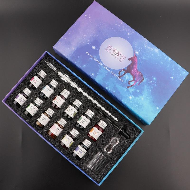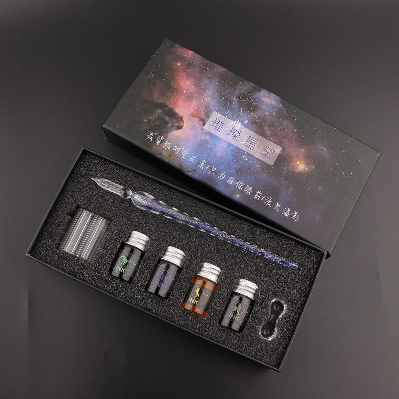 Yihuale 3 pezzi penna a immersione in vetro arcobaleno fatta a mano penna in vetro cristallo calligrafia firma penna