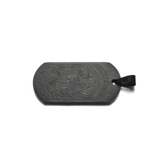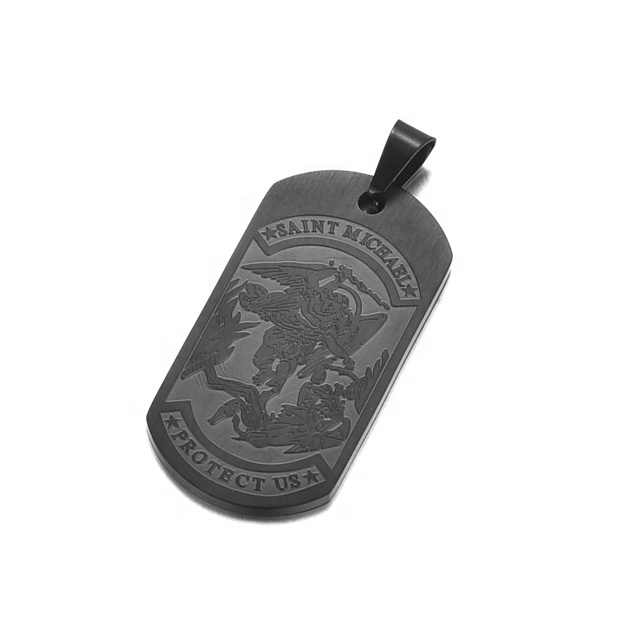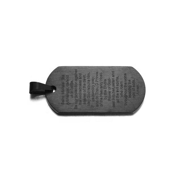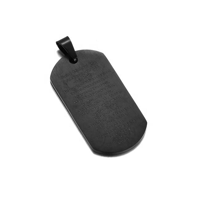 Yiwu Aceon Stainless Steel Rectangle Two Sides Etch Engraved Bible Text Sanity Michael Protect Us Angel Black Stamped Dog Tag