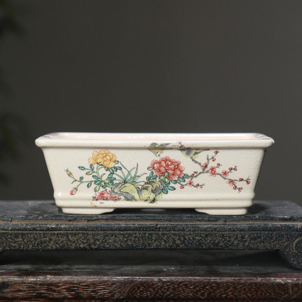Yixing vaso smaltato fatto a mano Yixing vaso per bonsai rettangolo vaso da disegno a mano