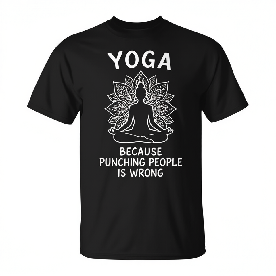 Yoga Because Punching People Is Wrong Crew Neck Short Sleeve Unisex T-Shirt with Silk Screen Printing
