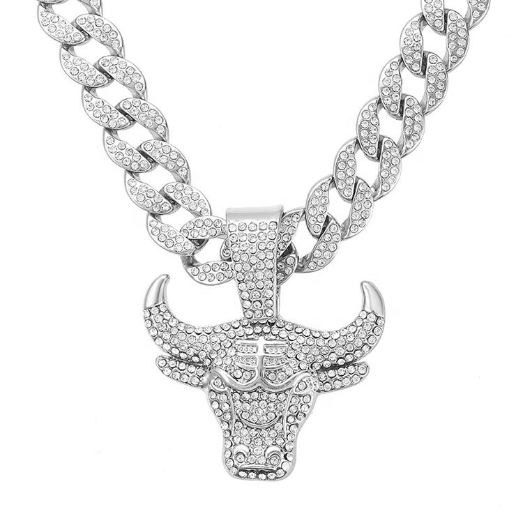 Collana con Pendente a Testa di Toro Personalizzato Yogoo Jewelry, Stile Hip Hop Rap con Diamanti per Uomo