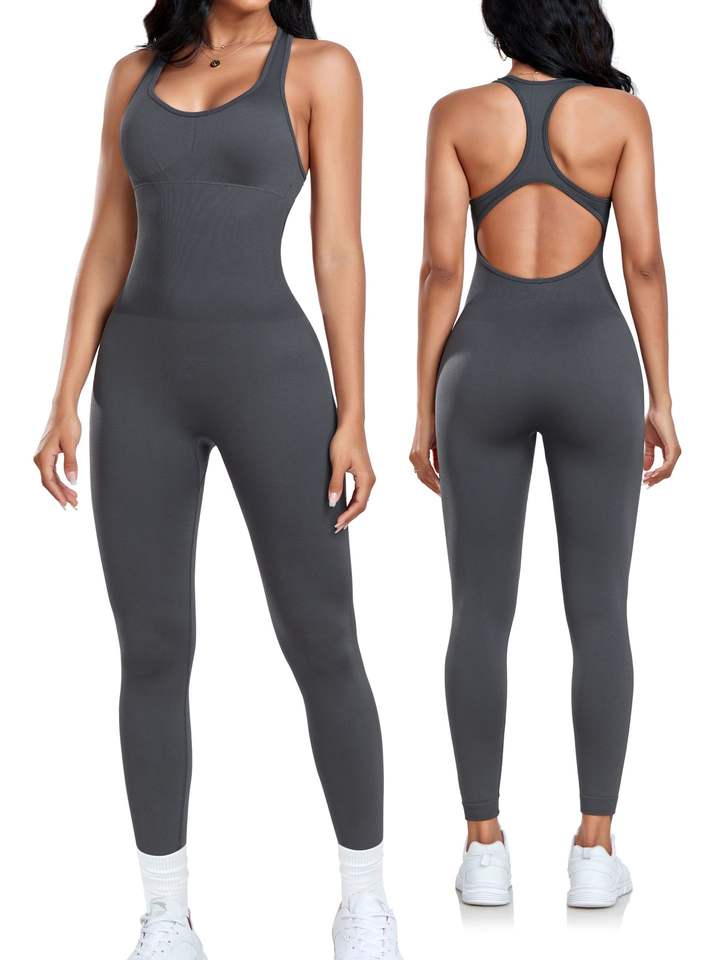 Tuta Sportiva Mezza Lunghezza Personalizzata ad Asciugatura Rapida, Tinta Unita, Traspirante, con Schiena Scoperta, per Allenamento e Yoga da Donna