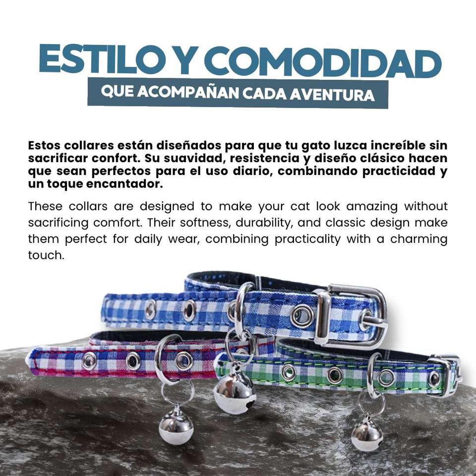 Yommy Adjustable Cat Collar Blue Plaid With Bell Soft Nylon Pet Collar For Cats