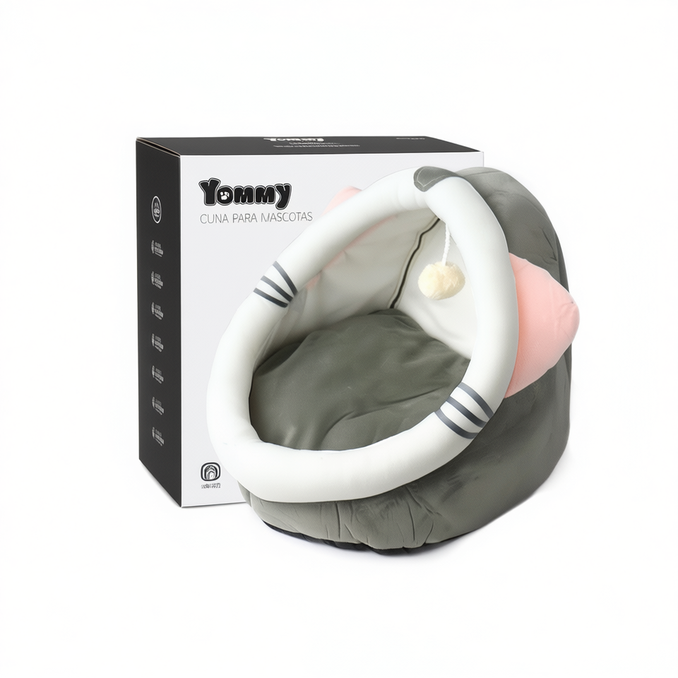 Yommy Cat Bed Cave 40x40x34cm Soft Coral Fleece Pet Bed For Cats Indoor All Seasons Cute Design