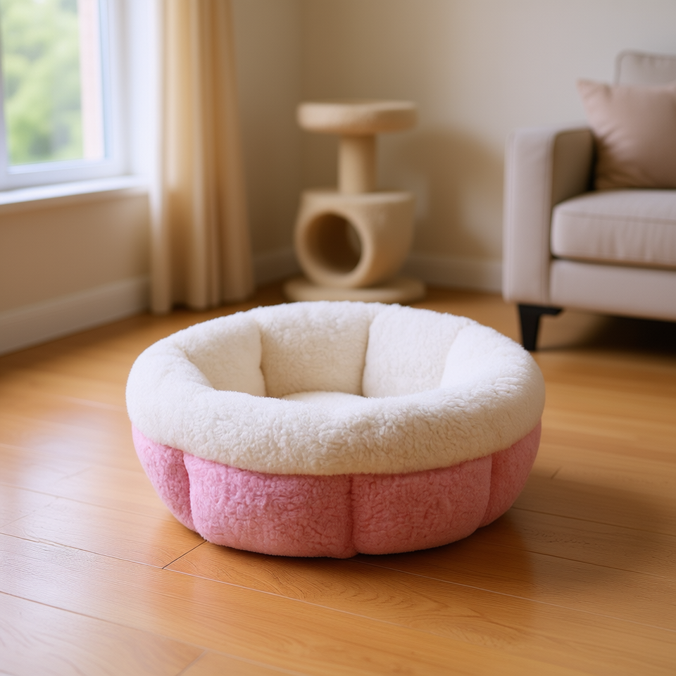 Yommy Cat Bed Pink Plush Soft Pet Bed With Non Slip Bottom For Cats And Small Dogs