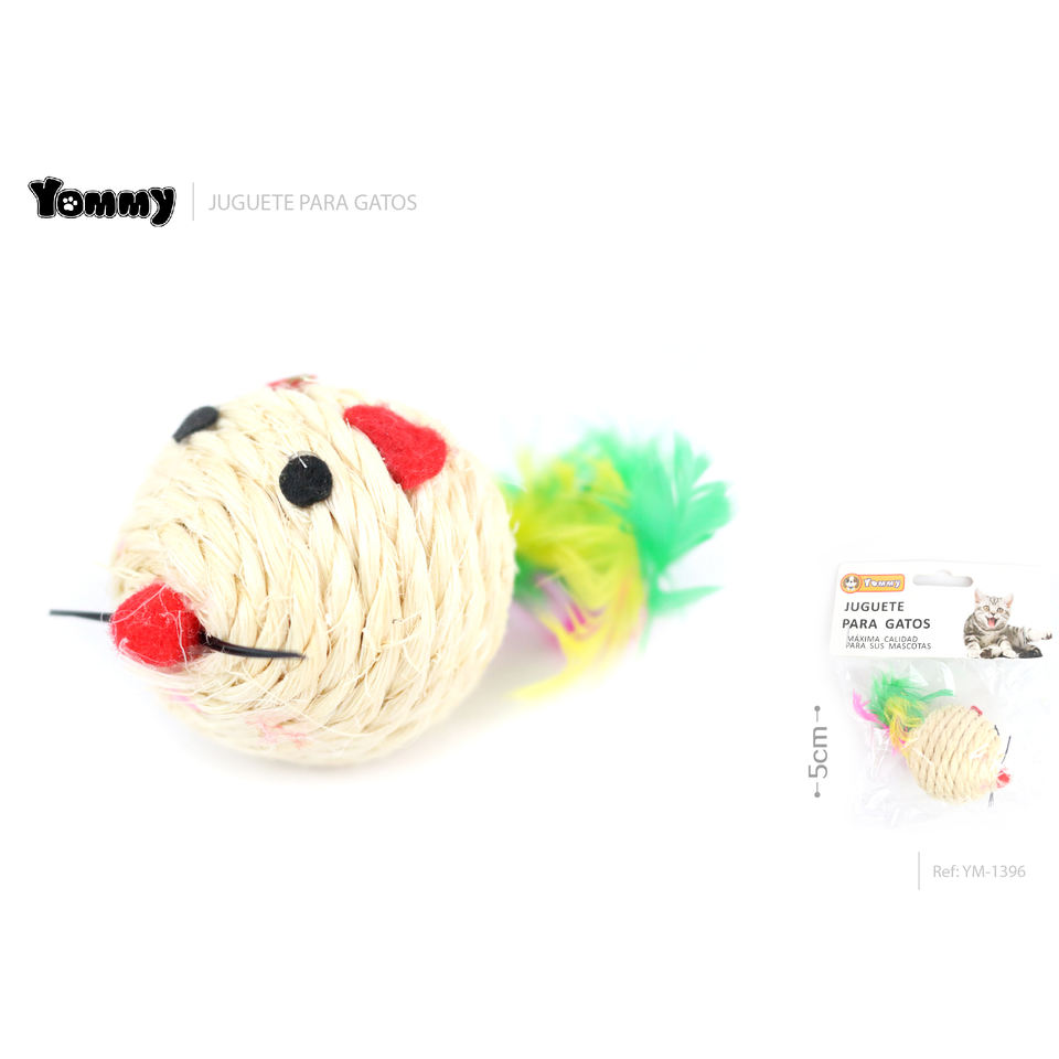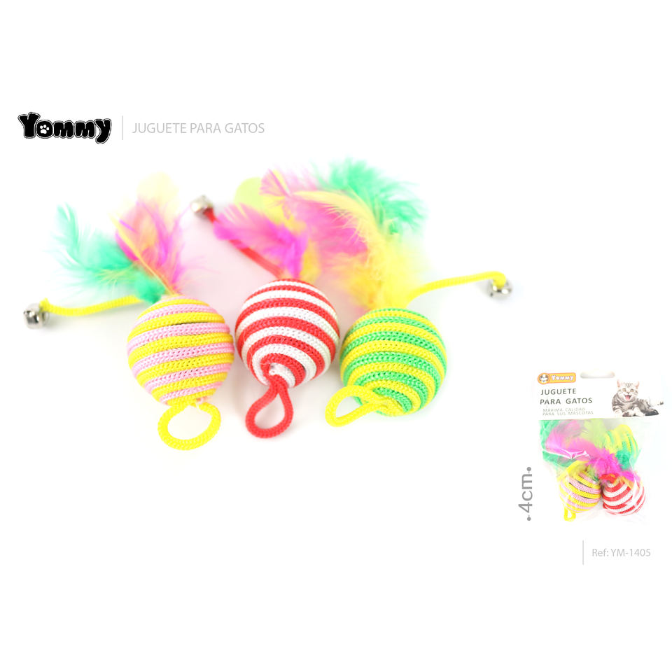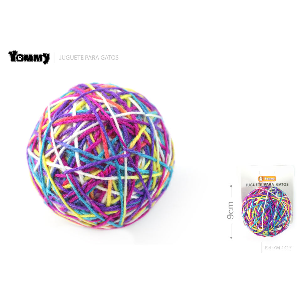 Pallina Giocattolo per Gatti Yommy 9cm con Corda Colorata Interattiva per il Gioco dei Gatti