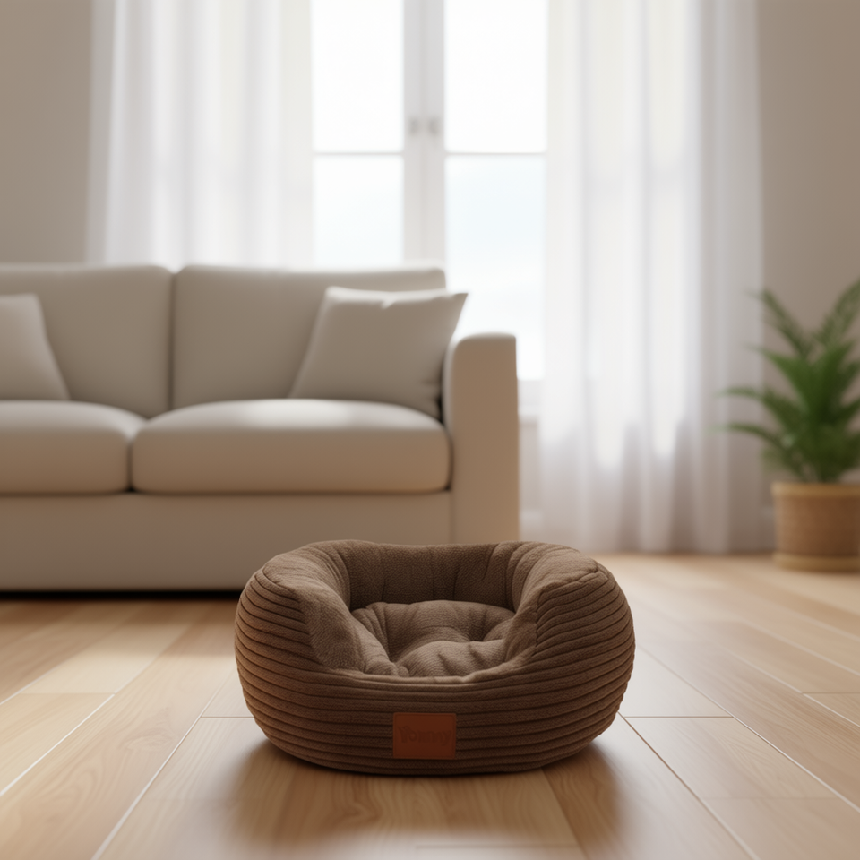 Yommy Corduroy Dog Bed Oval Soft Pet Cradle S M L Waterproof Non Slip Base