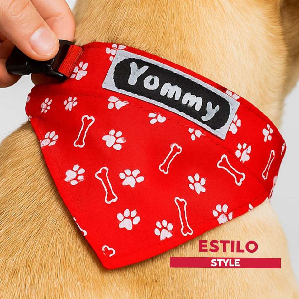 Yommy Dog Bandana Red With Bone And Paw Print Pattern For Pets Style
