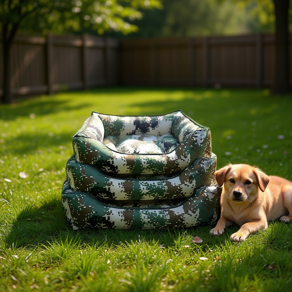 Yommy Dog Bed Camouflage 3Pc Set S M L Waterproof Non Slip Base
