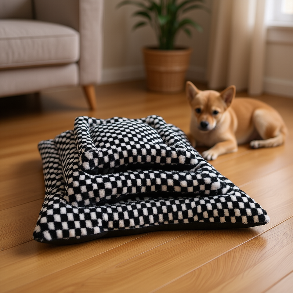 Yommy Dog Bed Plush Checkered Pattern S M L Waterproof Non Slip Pet Mattress