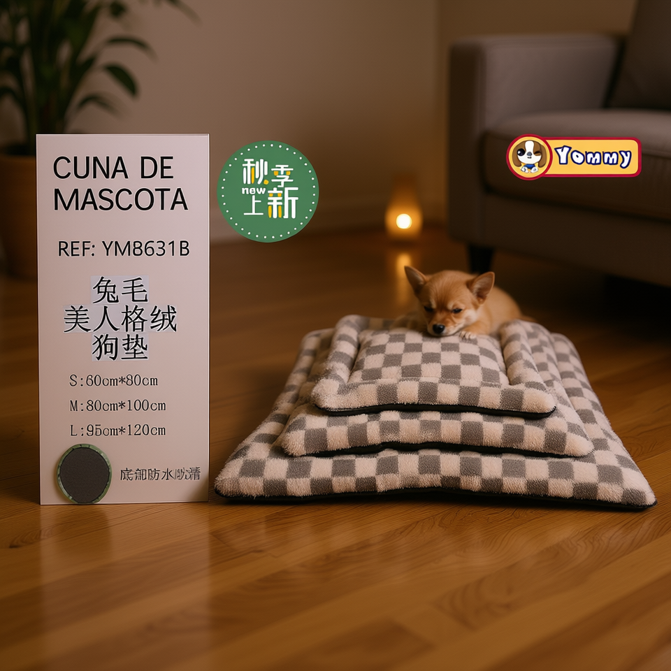 Yommy Dog Mattress 60x80cm 80x100cm 95x120cm Plush Checkered Pet Bed Waterproof Non Slip Bottom