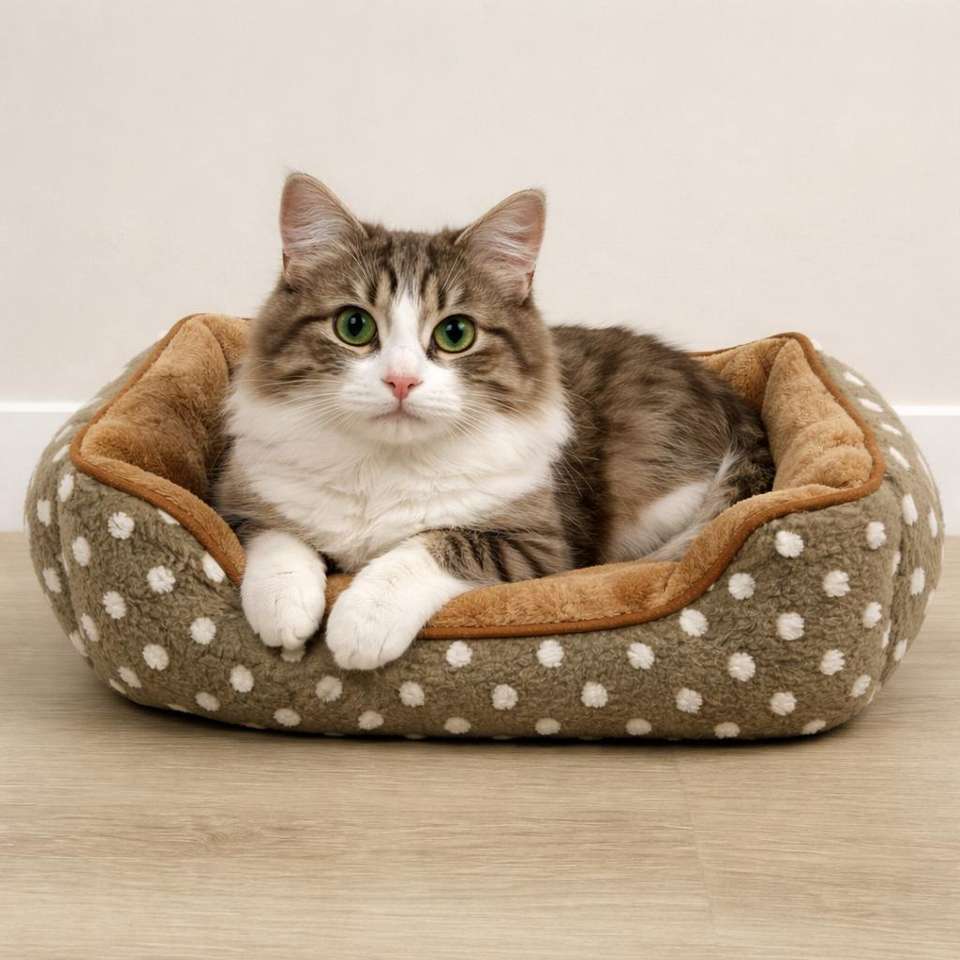 Yommy Pet Bed Plush Polka Dot Design Non Slip Base Padded 3 Sizes 3 Colors