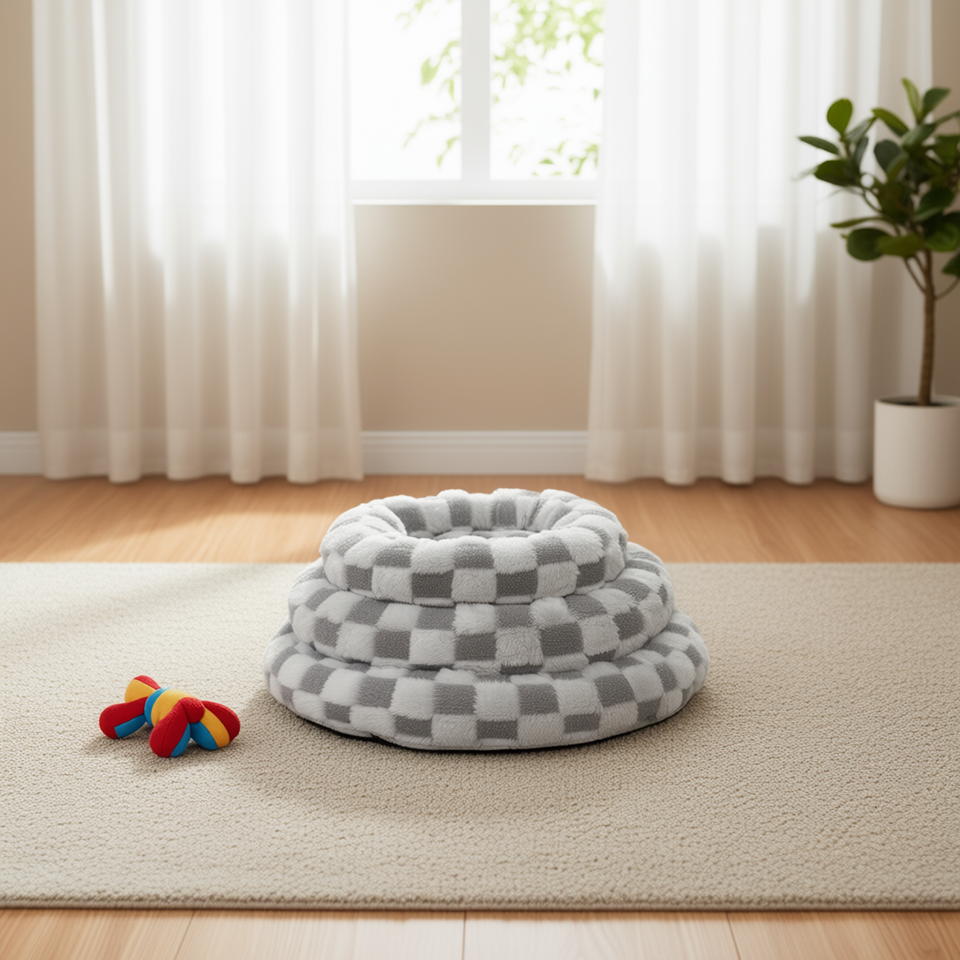 Yommy Pet Bed Round Plush Dog Cradle YM8630A S M L Waterproof Non-Slip Bottom