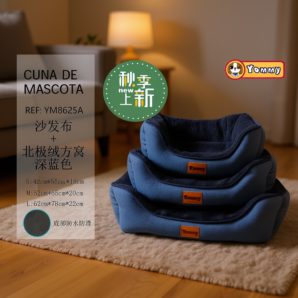 Yommy Pet Bed Sofa Fabric Arctic Fleece Deep Blue S M L Waterproof Non-Slip Bottom