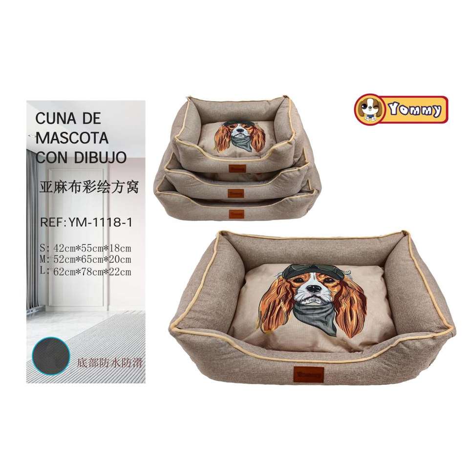 Yommy Pet Bed With Dog Print Rectangle S M L Waterproof Anti Slip Indoor Dog Bed