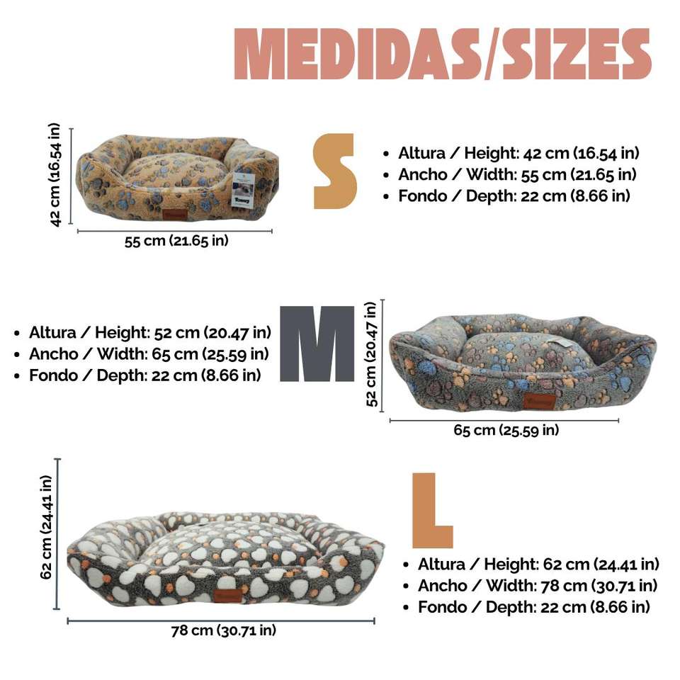 Yommy Pet Bed with Paw Print or Heart Design Soft Flannel Fabric Non-Slip Base 3 Sizes S (42x55 Cm) M
