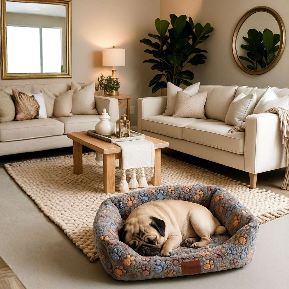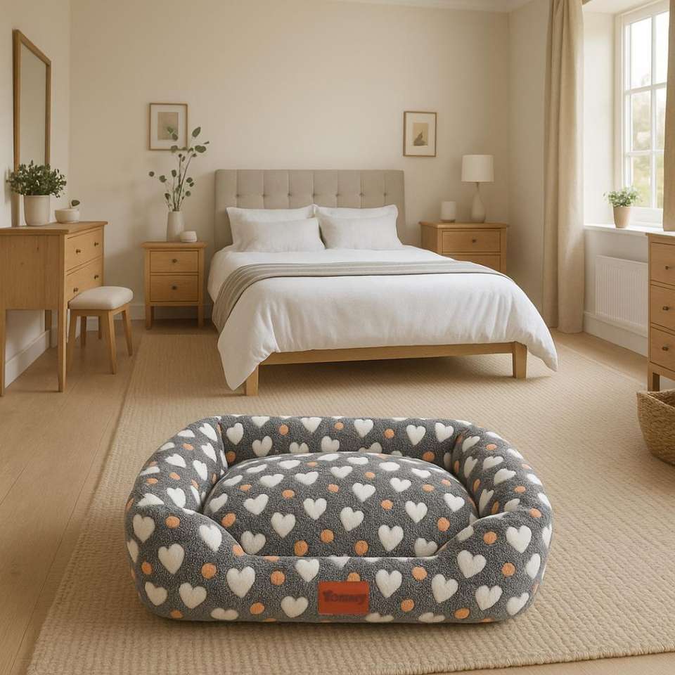 Yommy Pet Bed with Paw Print or Heart Design Soft Flannel Fabric Non-Slip Base 3 Sizes S (42x55 Cm) M