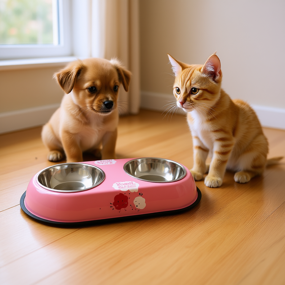 Yommy Pet Bowl Double Feeder 38.5cm Stainless Steel For Dogs And Cats