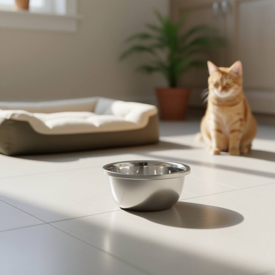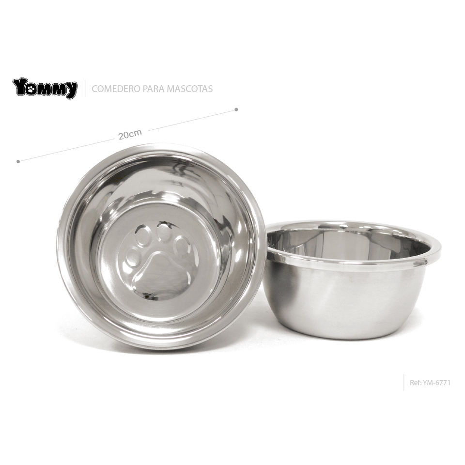Yommy Pet Bowl Stainless Steel 20cm For Dogs And Cats Feeding Dish