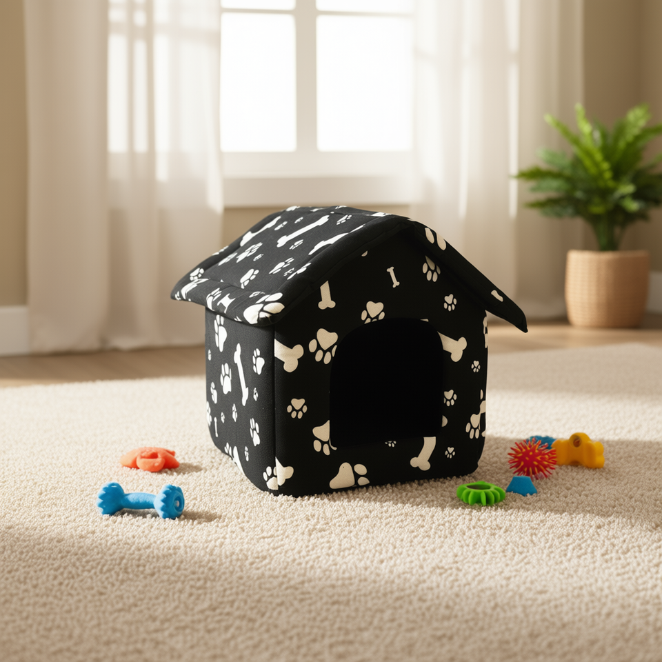 Yommy Pet House L 54x58x49cm Soft Fabric Dog Cat Bed House With Paw Print Design For Small Pets