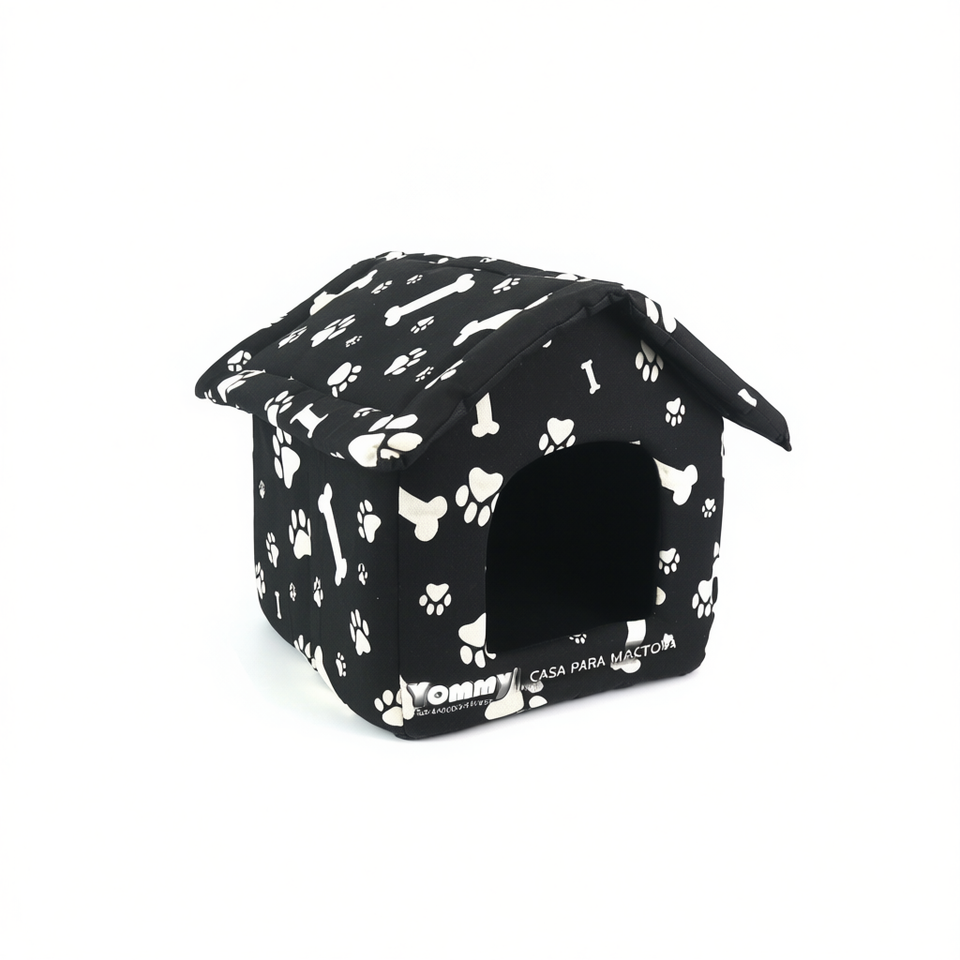 Yommy Pet House S 42x40x37cm Soft Fabric Dog Cat Bed House With Paw Print Design