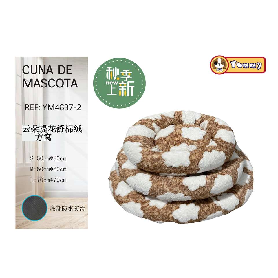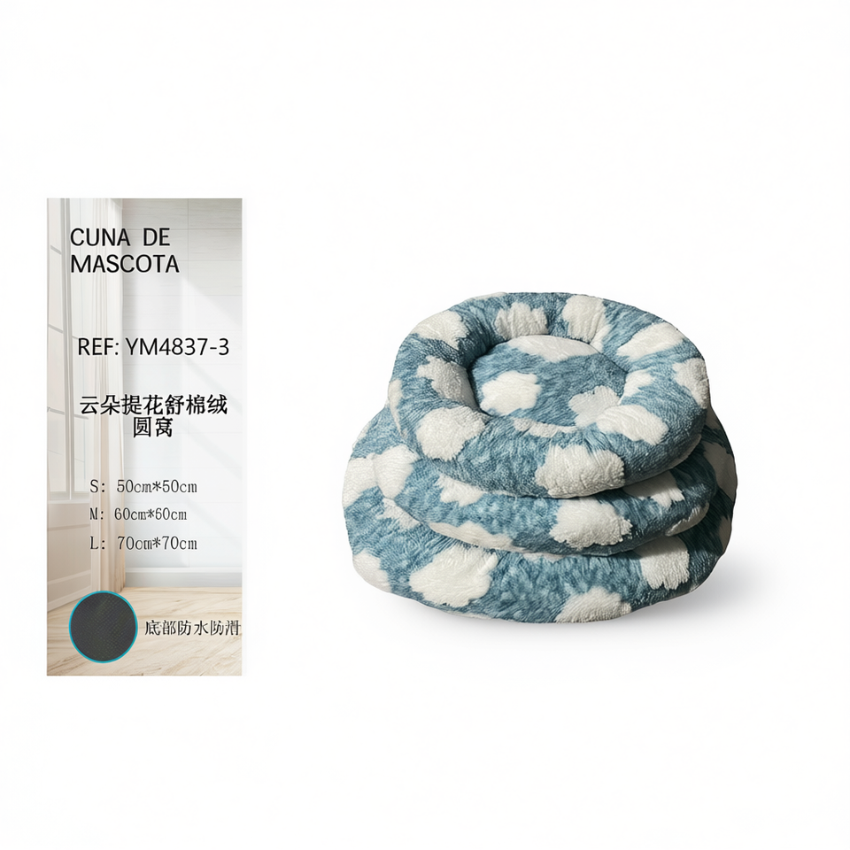 Cuccia Rotonda per Animali Domestici Yommy con Motivo a Nuvole, Morbida e Peluche, Fondo Impermeabile, Taglie S M L per Cani e Gatti