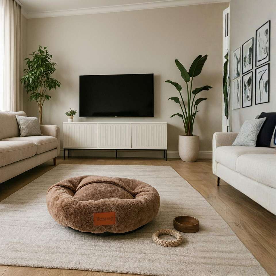 Yommy Round Pet Bed Soft Cozy Circular Design Raised Edges for Cats Small Dogs