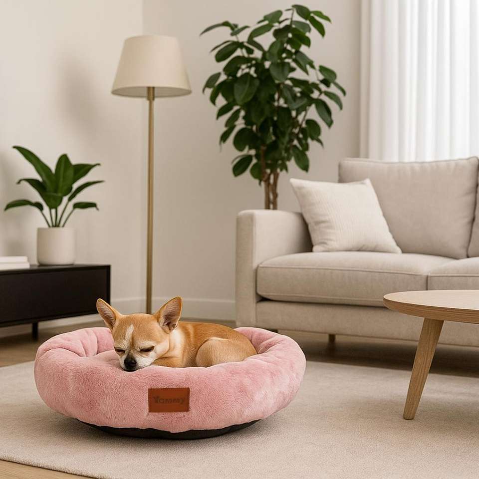 Yommy Round Pet Bed Soft Cozy Circular Design Raised Edges for Cats Small Dogs