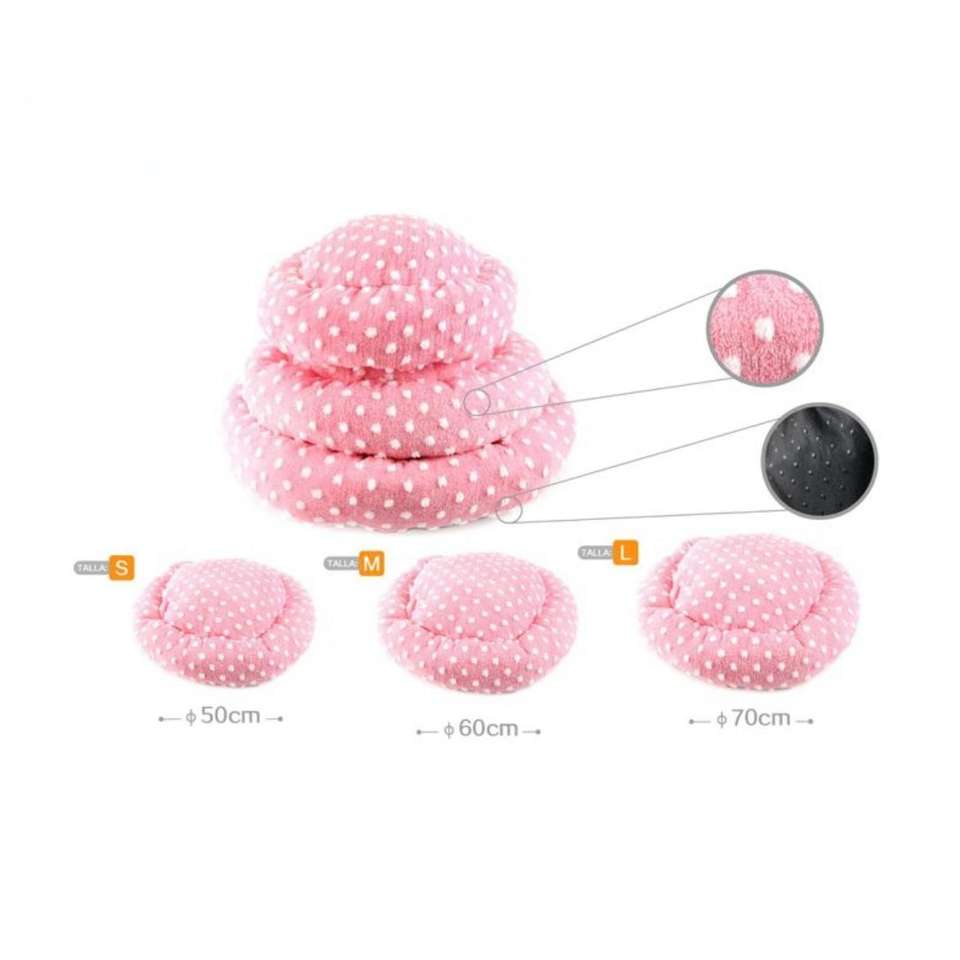 Yommy Round Pet Bed for Dogs and Cats Soft Warm and Fluffy with Dot Design for Small Pals