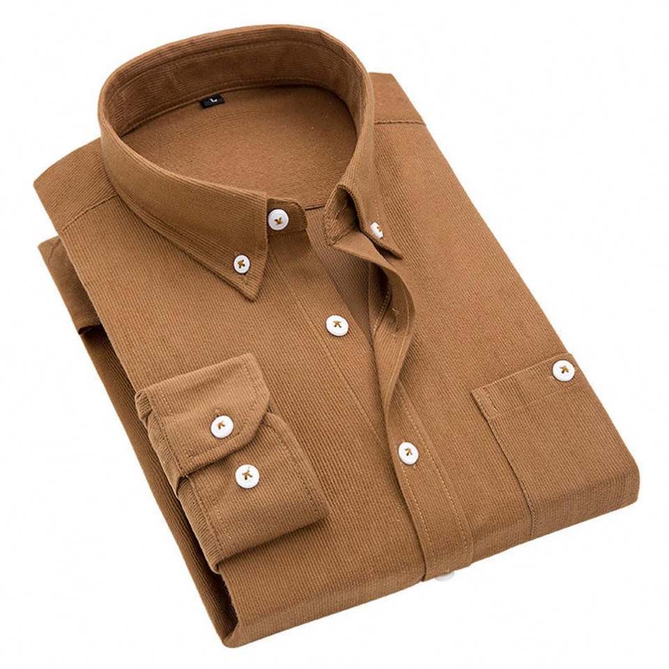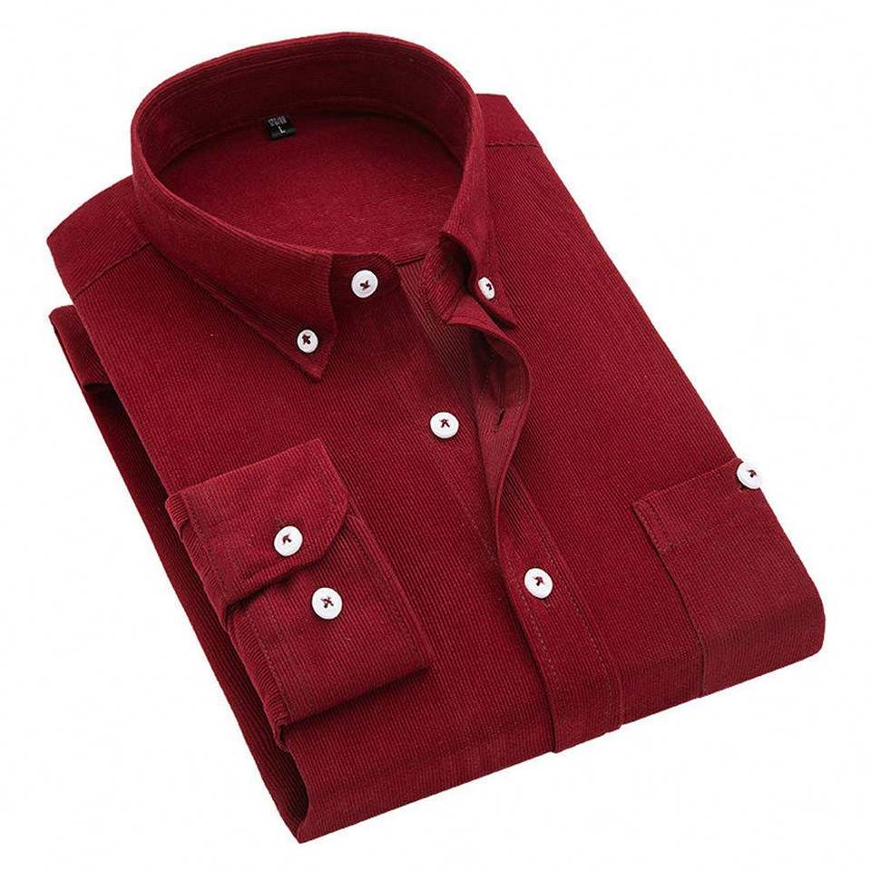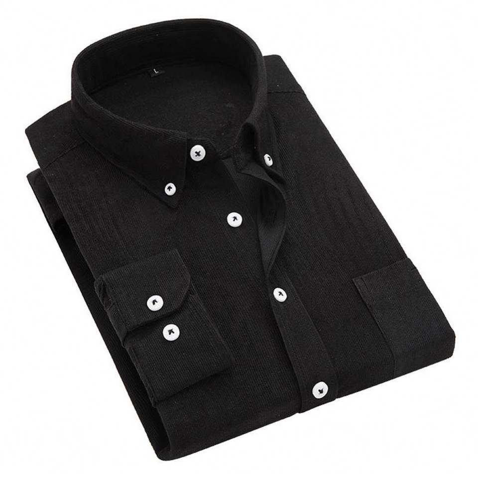 Camicia da uomo Yomo a maniche lunghe in velluto a coste tinta unita, vestibilità slim, con bottoni sul collo, per uso quotidiano, formale o business, modello POLO oversize, economica