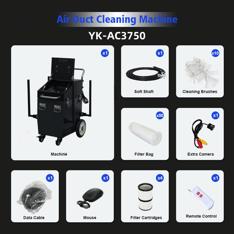YorkTech Industrial HVAC Air Duct Cleaning Machine High Performance Rotary Brush AC Duct Cleaner for Maintenance Companies