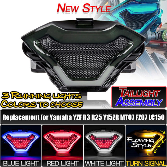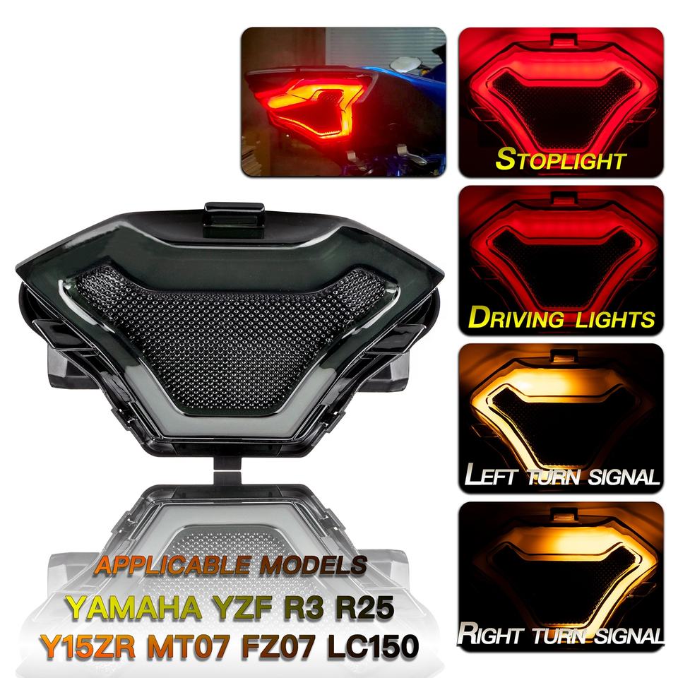 Kit Fanale Posteriore per Moto Yosovlamp con Luce di Posizione, Freno e Indicatori di Direzione a LED per Yamaha R3 R25 R1 R6 R7 Y15ZR LC150 MT07 YZF FZ07