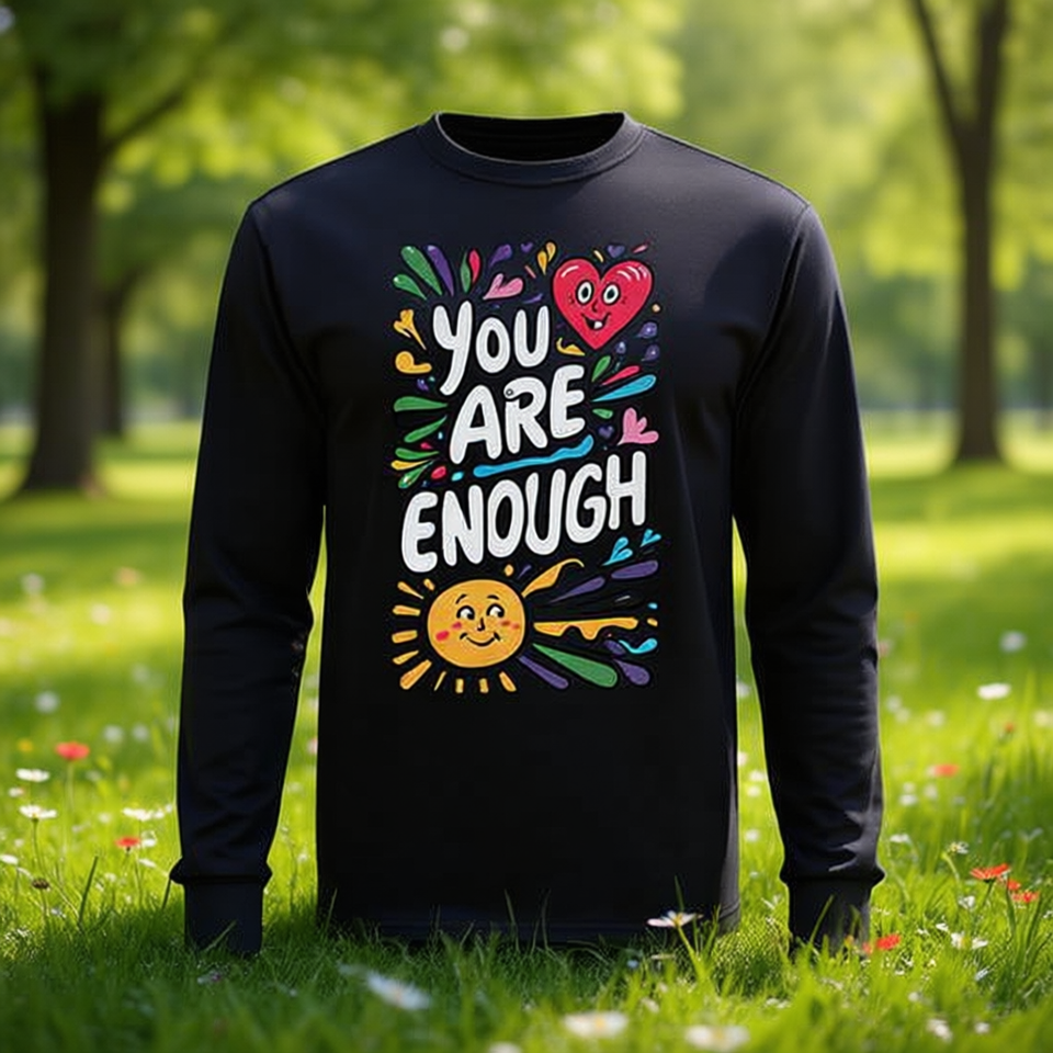 You Are Enough Inspirational Quote Long Sleeve T-Shirt Premium Soft Comfortable Wear For Self Love Motivation