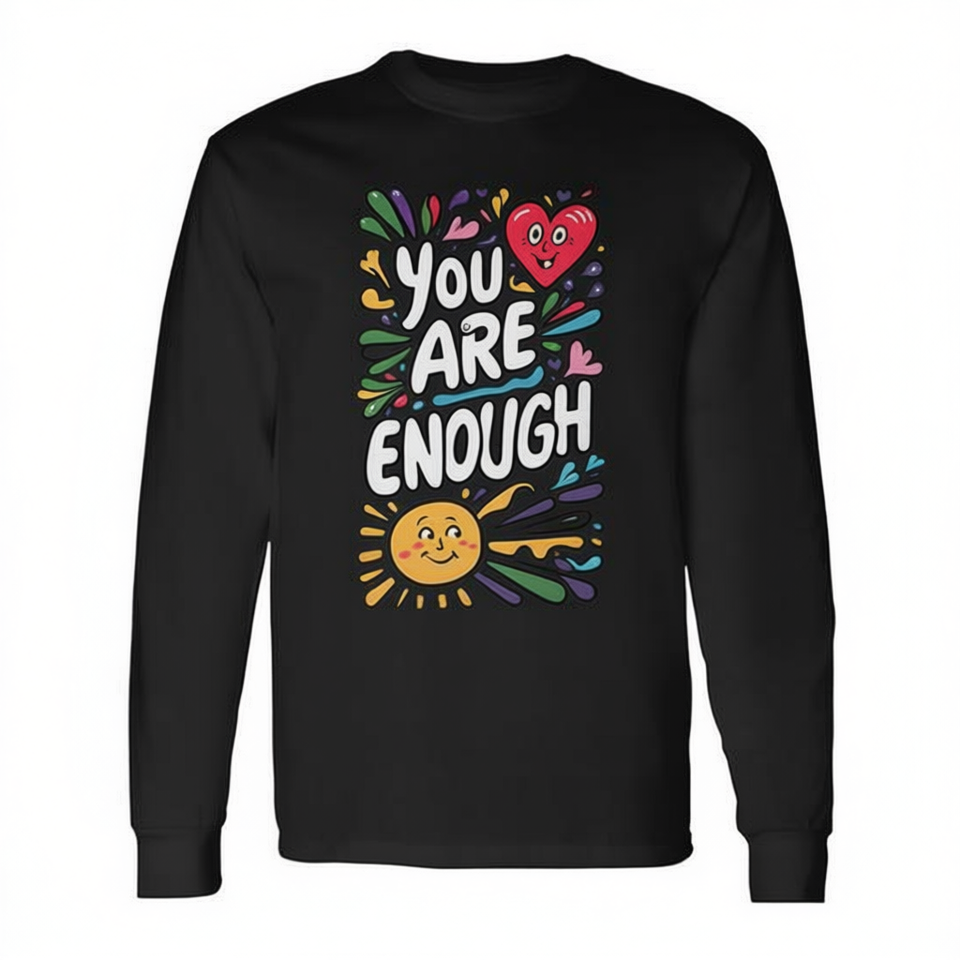 T-shirt a maniche lunghe con citazione ispiratrice You Are Enough, design unisex, vestibilità morbida e confortevole, di alta qualità