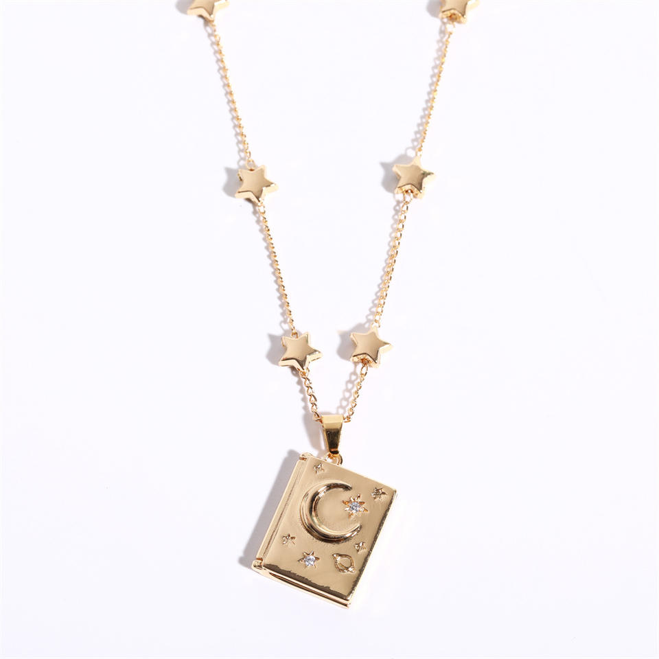 You You My Soulmate collana con medaglione inciso Lover Friend 18K placcato oro relazione coppie collane con stella lunare apribili