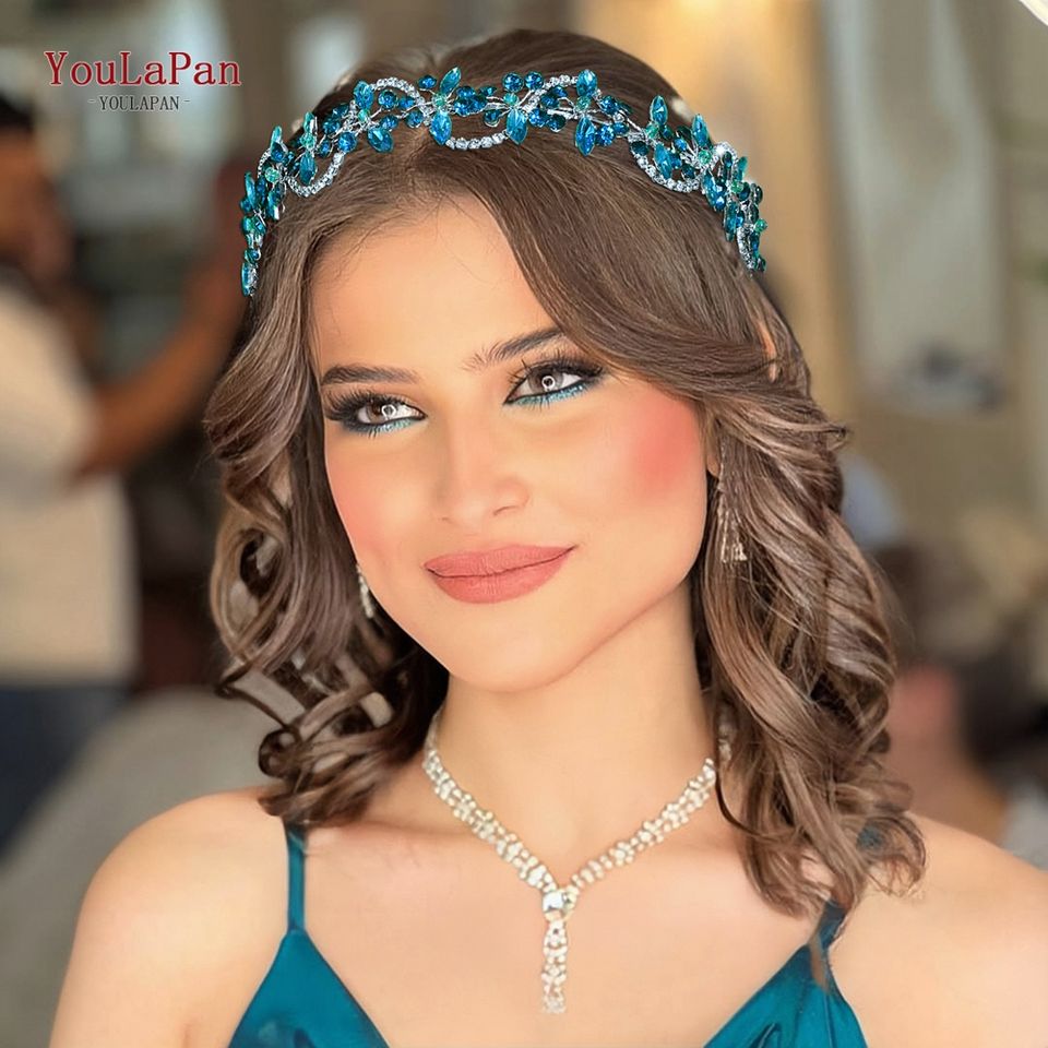 YouLaPan Accessorio per Capelli da Sposa con Strass Azzurro Chiaro, Coroncina Scintillante di Lusso per Banchetti e Feste HP266