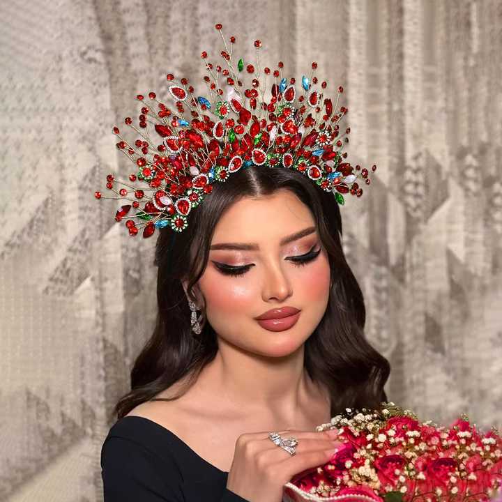 YouLaPan Splendida fascia per capelli da sposa con strass rossi, tiara perfetta per anniversari e feste di fidanzamento HP861