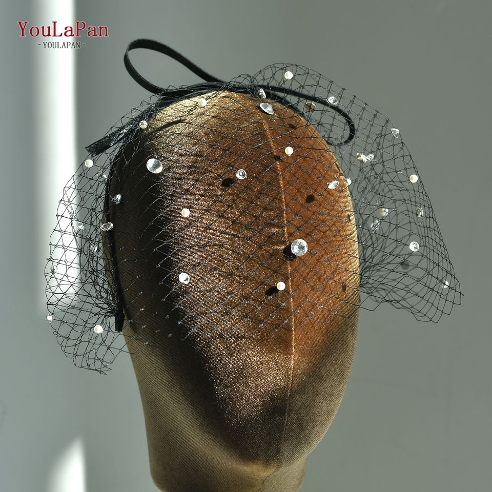 YouLaPan MA12 Elegante Velo a Rete Traforato Nero con Strass per Spose, Adatto per Feste ed Eventi Serali