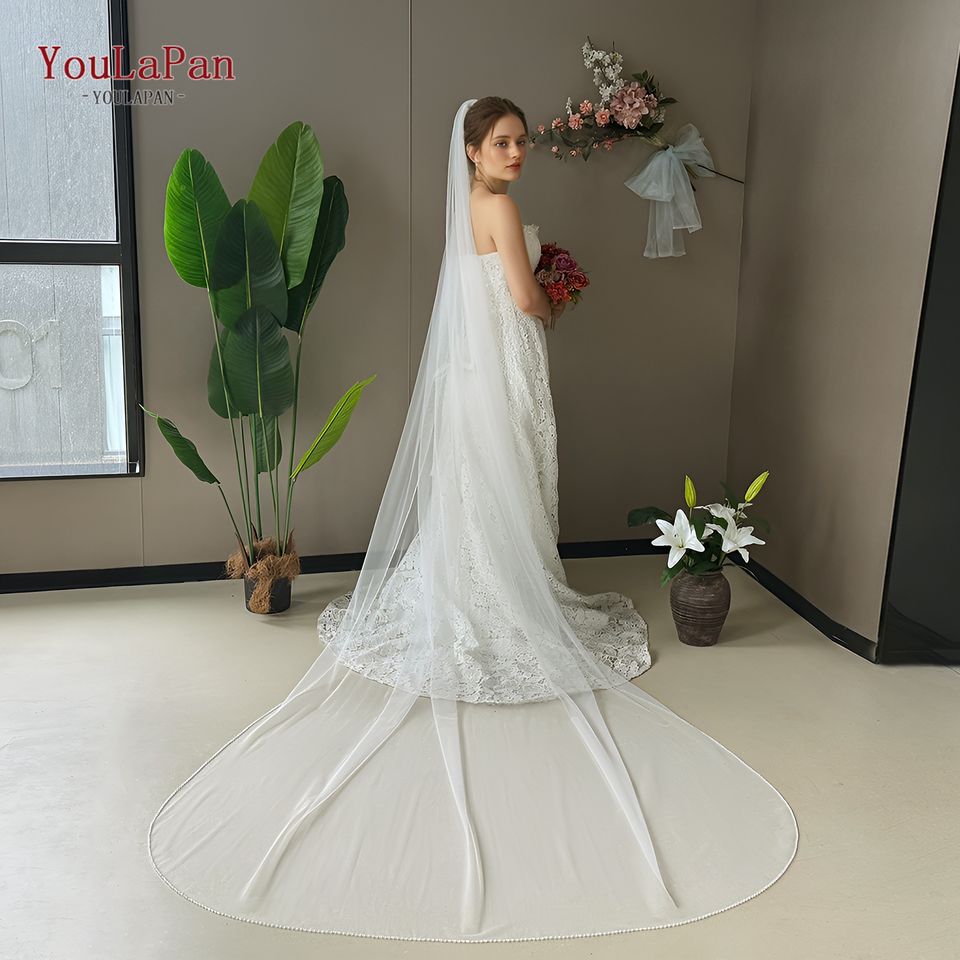 YouLaPan V34 romantico e semplice velo da sposa monostrato a forma di diamante con bordo in rilievo di cristallo personalizzabile formato velo da sposa
