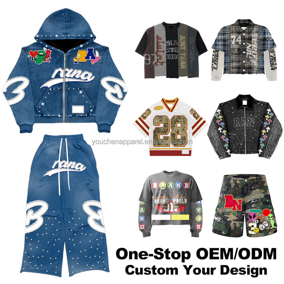 Youchen Baggy Jeans Custom Y2k Cotton High Quality Leather Denim Jeans Straight Wide Leg Pants Men