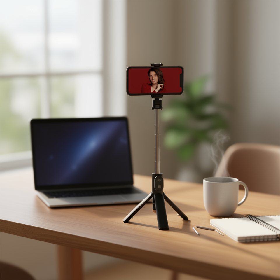 Supporto per telefono regolabile Young Electronicos con base a treppiede e funzione selfie stick per smartphone, in lega di alluminio, da scrivania