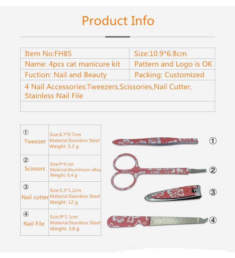 Product name:Girl cute doggy and kitty 4 pcs finger nail face care beauty tool set