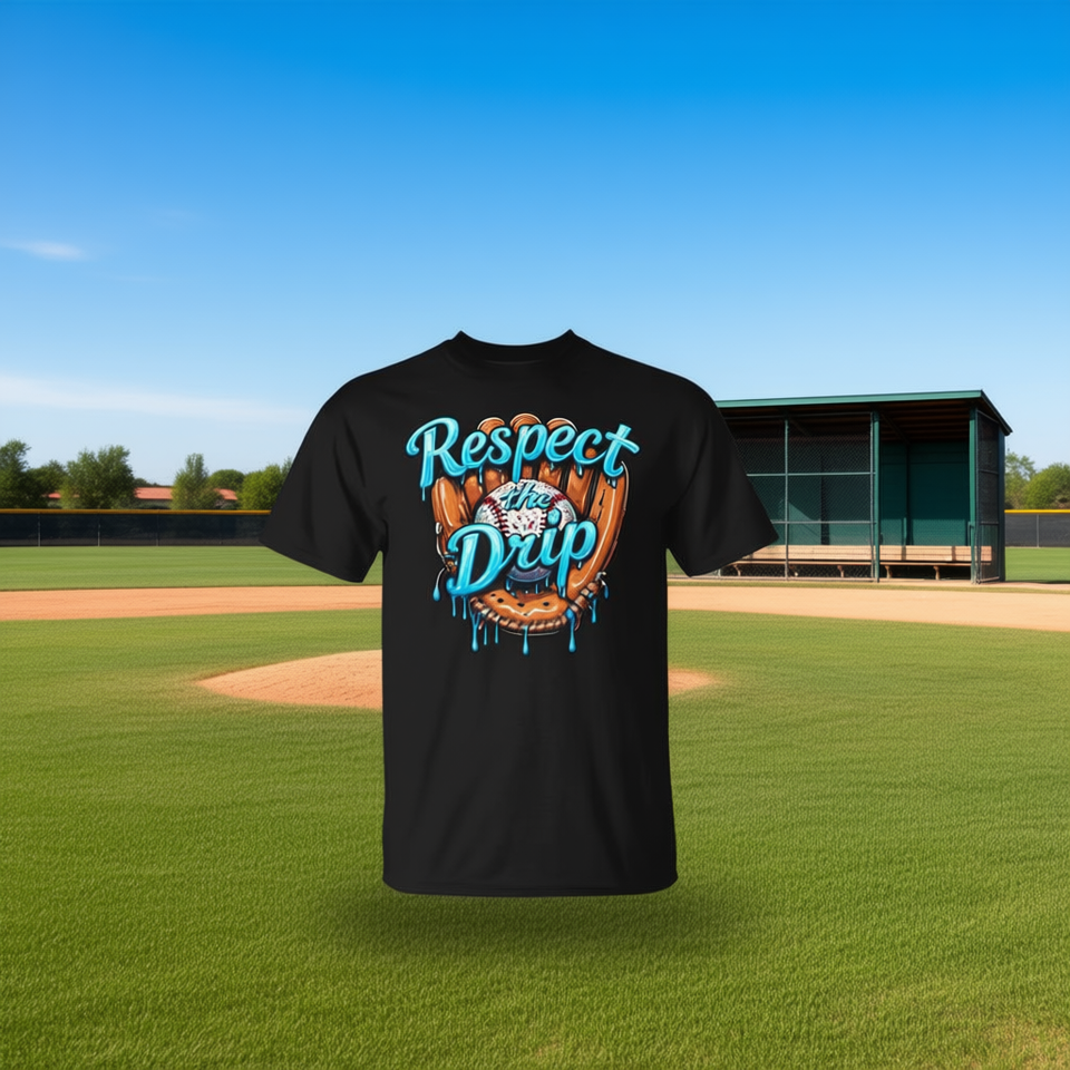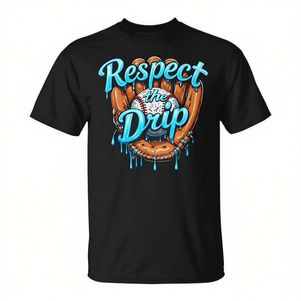 T-Shirt da Baseball 'Youth Respect the Drip' con Grafica a Goccia di Gelato, Abbigliamento Promozionale per Ragazzi