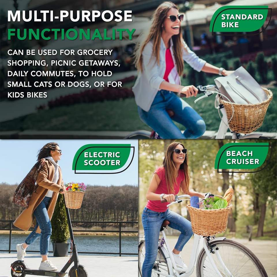 Yulin Jiafu Wicker Bike Basket Front Cargo for Women and Men, Fits Most Bicycles, Beach Cruisers, Stationary Equipment