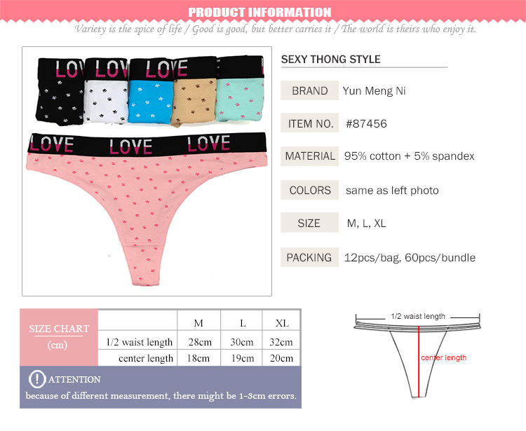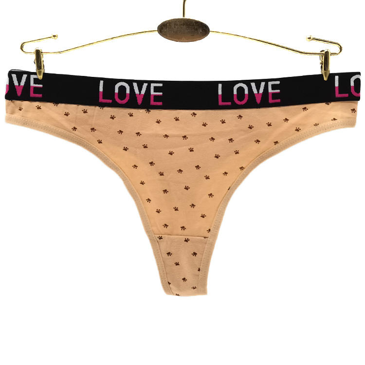 Yun Meng Ni Sexy Underwear LOVE Band Cute Feet Print Soft Cotton Girls Thongs