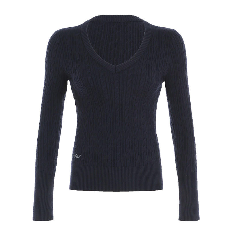 Z-5804 Maglione da Donna Stile Americano con Ricamo a Lettere, Collo a V Profondo, Lavorato a Maglia, per Autunno e Tempo Libero