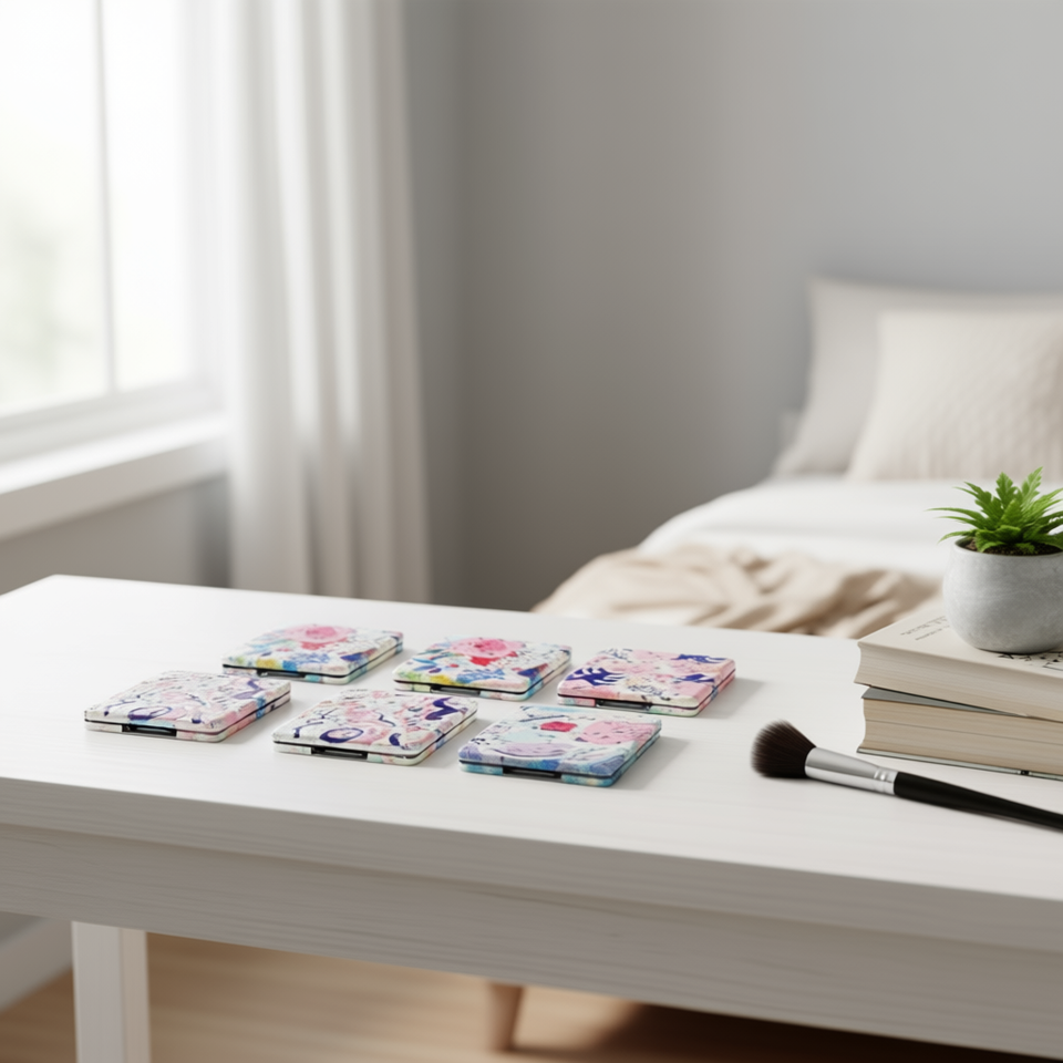 Z 6.3Cm Square Oil Painting Portable Mirror Vanity Mirror For Women With Colorful Floral Design